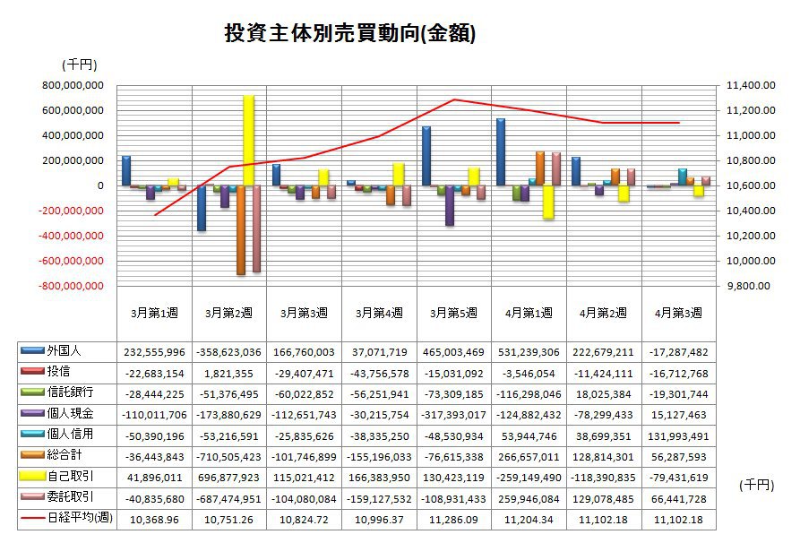 4月第3週投資主体別売買動向(グラフ)