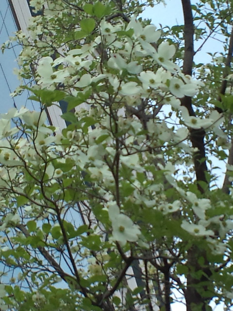 この花はハナミズキと言うのですね。朝、ウォーキングをしているときに綺麗な花だな~と見かけた花です。