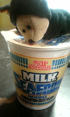 あ!ミルクシーフードヌードルの上にくまちゃんが!