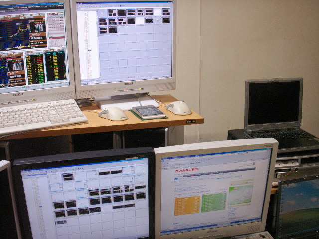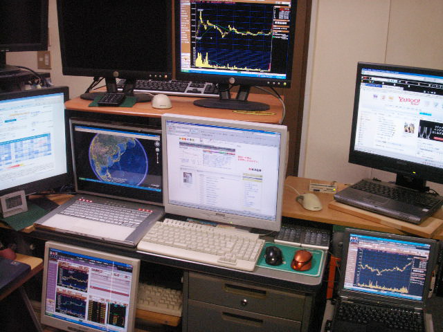 株でいえば、1つの銘柄で各種チャート表示、ニュースやファンダ検索、トレードを3台で、市場全体監視を1台で、合計4台