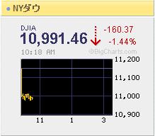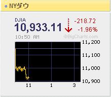 NYダウ、11,000ドル割れ。