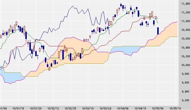 日経平均株価 10,695.69 -361.71 -3.27%
