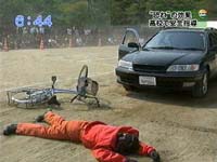 よくある事故を生徒たちに擬似体験させることで、危険な行為をさせないという安全教育のひとつです。