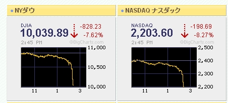 ダウが1万円を割り込んでいるし、米国ヤフーのファイナンスサイトに入れない状態になっています。