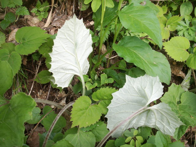 このオヤマボクチは若い葉は、葉のうら面が真っ白です