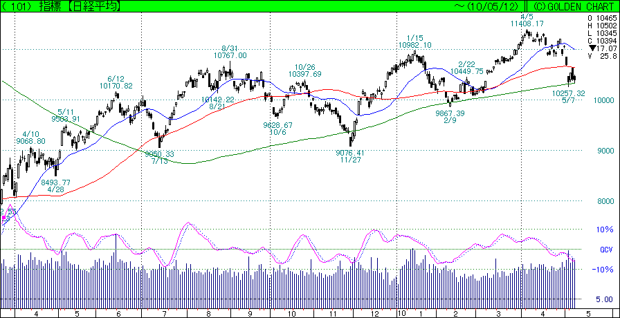今日5月12日(水)の東京市場は、やはり冴えない展開。前場こそ上昇していたものの、毎度お決まりの後場寄りでマイ転し、あとはなんとなくそれっきり。まだ不安材料が多く、あく抜けには遠い状況につき、致し方ない動きでござりましょう。