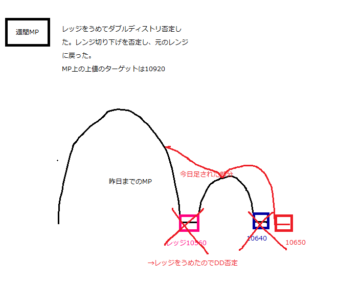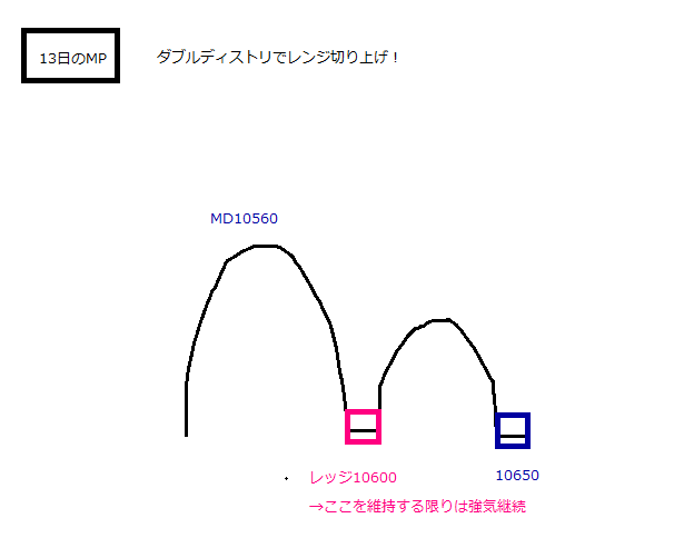 日足MPも10600にレッジを残したDD。