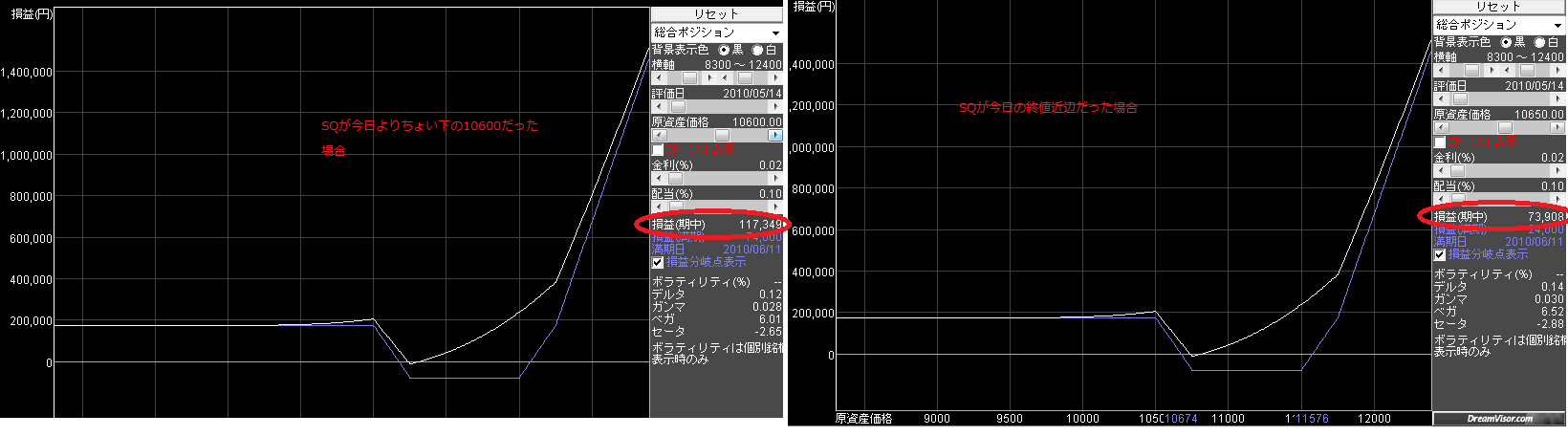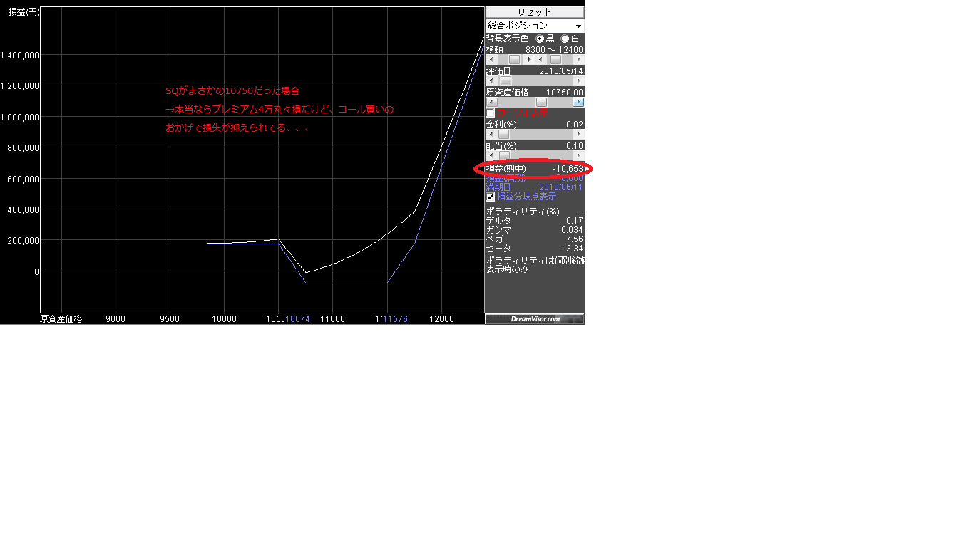 えらんだのが、当時現在価格から500円程度下のプット、で買いコスト下げる為にアウト売り、、、だったので、500円程度の値幅なら勝率高いかな~と思ったのですが、、、デビにすることによって一気に勝率悪化するんですかね???