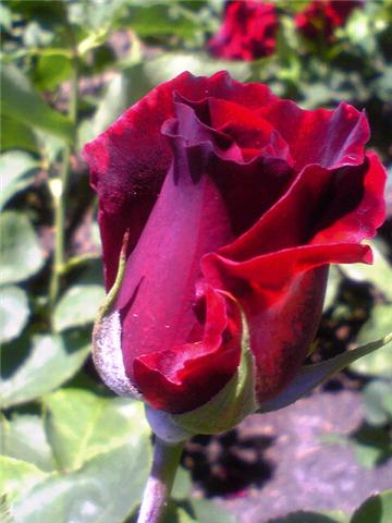 はな バラ園 鶴舞公園:黒真珠つぼみの間は黒い色をしていて、花が開くと赤い色が段々薄くなってくる。つぼみの状態は黒い真珠のようなのでしょう。黒蜥蜴に出てきそうな花です。人生最後のセレモニーにはこの黒真珠が似合います。本物の黒真珠はタヒチ近辺で取れるようです。