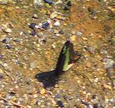 ちょうちょう アオスジアゲハ、給水:アオスジアゲハがようやく飛んでいます。地面から給水しています。人間と同じで結構のんべいです。