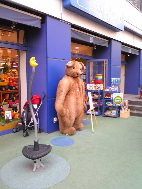 近所のおもちゃ屋さんのエントランスに大きなくまさんがいます。