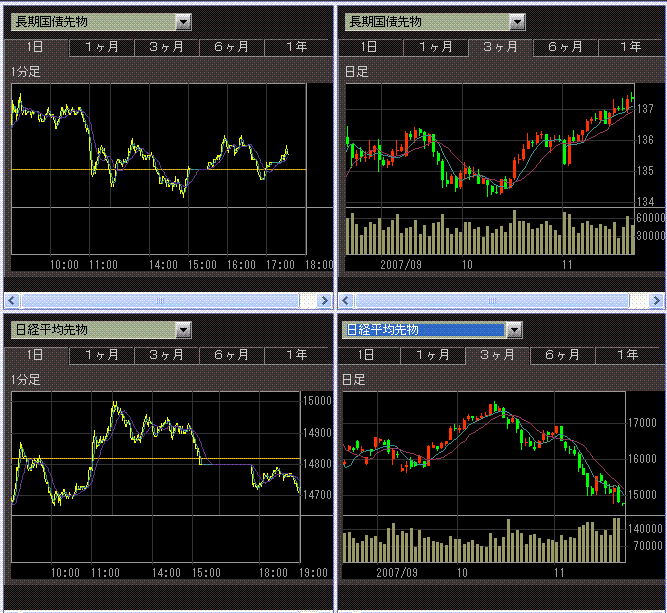 ・さっきまで夕場取引を見ていましたが、日経平均は、ザラ場で動いても夕場取引やSGXやCMEで元の位置に戻ってしまいますね。相変わらずどっちが本市場なんだかわかりません。