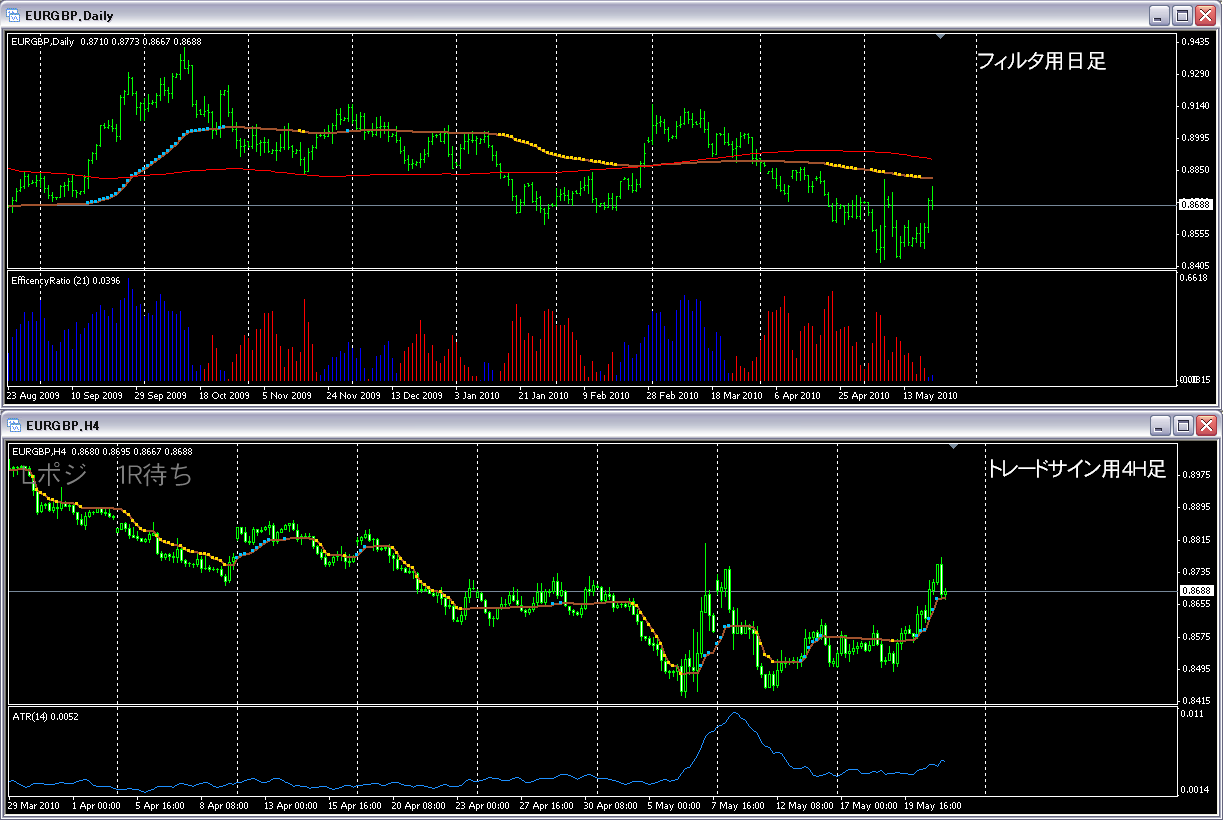 ⇒Adaptive Moving Average(適応型移動平均)が有利っぽい