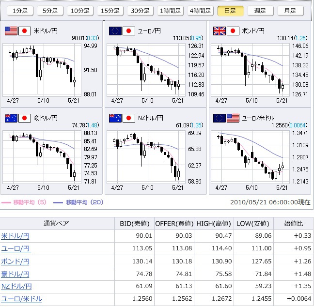 2010/05/24(月曜)トロント休場(ビクトリア・デー)、フランクフルト、チューリッヒ休場(アセンション・デー)