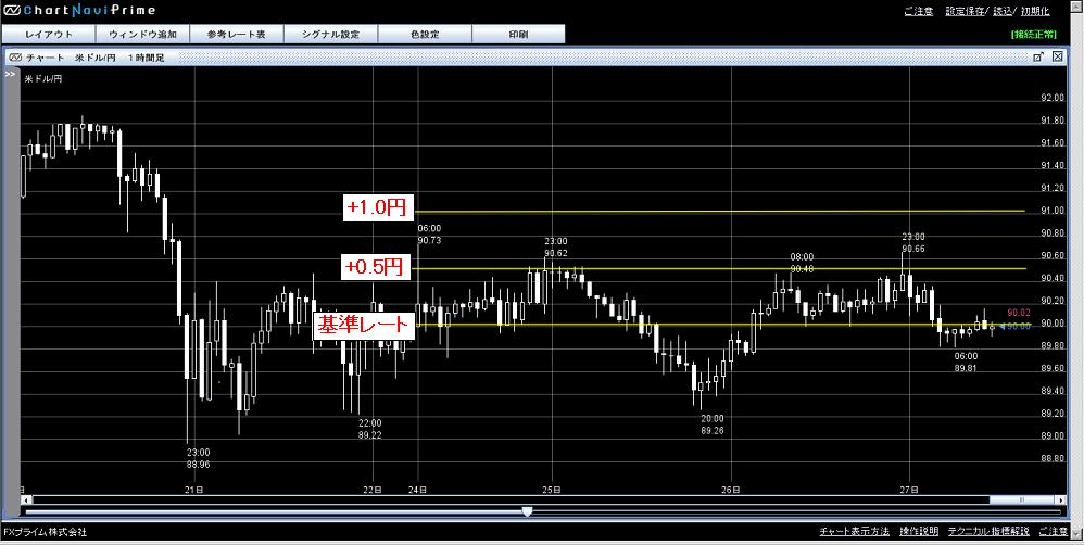 (ドル円のチャートに私のターゲットラインを引いてみました)