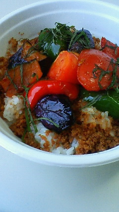 今日のお昼は写真のスタミナDONぶりを食しました。
