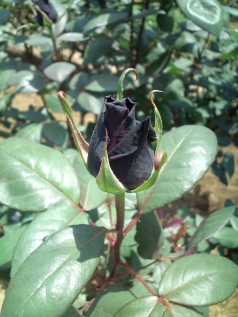 先日旧古河庭園のバラフェスティバルに行った際、つぼみが真っ黒なバラがありました。
