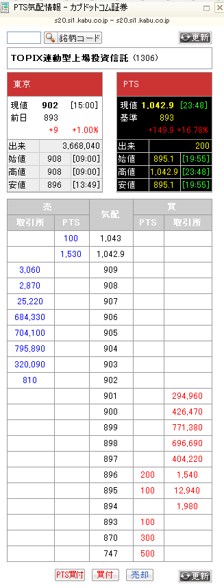 kabu.comPTSで1306に誤発注