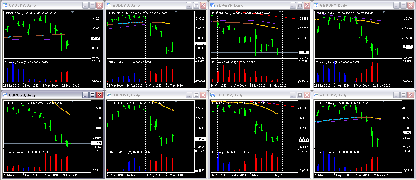 日足の効率レシオはまだ下落を示しているので、来週もショートで攻めます。