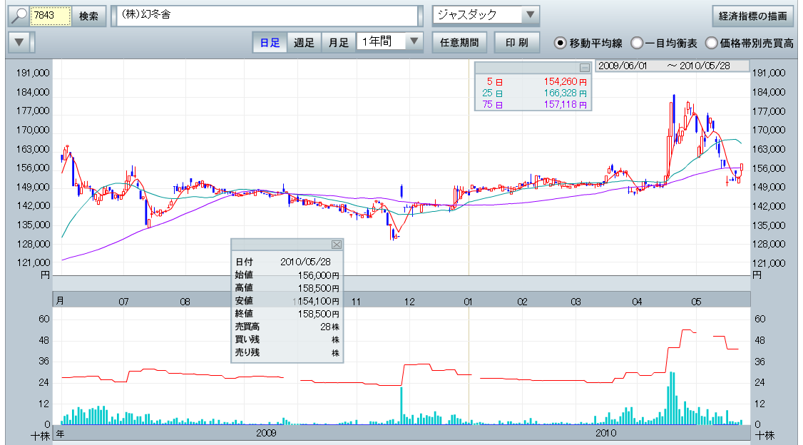 日足チャートを見ますと、185000の高値の出来高が300株なので、かなり期待できそう
