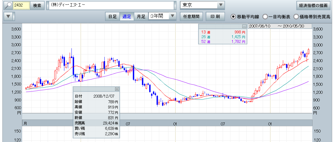 先週の金曜日に上場来新高根2945をつけて、2007年12月の2940を超え、ちょっと下げです