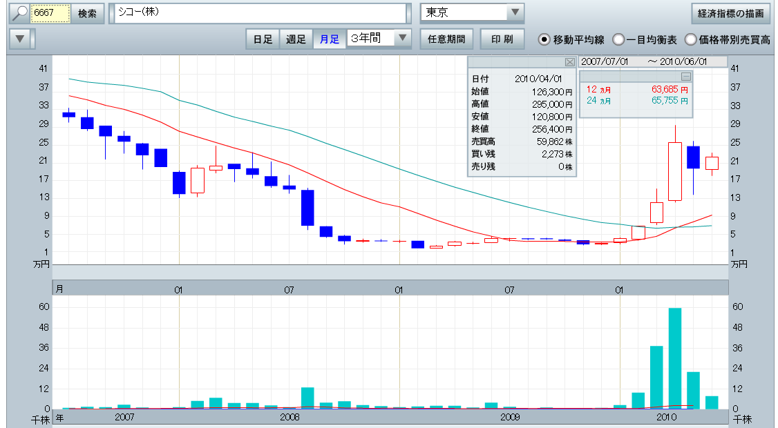 死んだフリしてて生き返った株を1つ、例えば6667:シコー