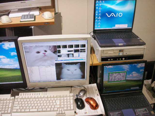 写真の右上のVAIOノートパソコンと、その下のNECデスクトップです