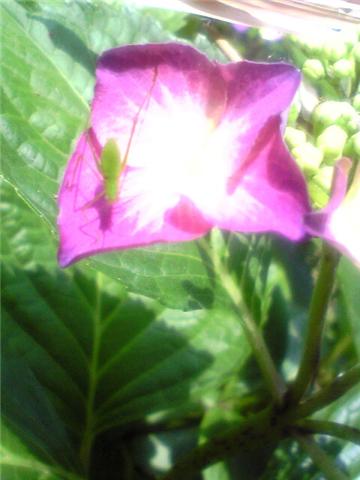 アジサイにアオマツムシ幼生か?
