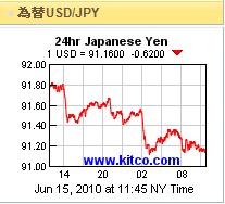 USD:91.0円台をキープ(円高気味?)