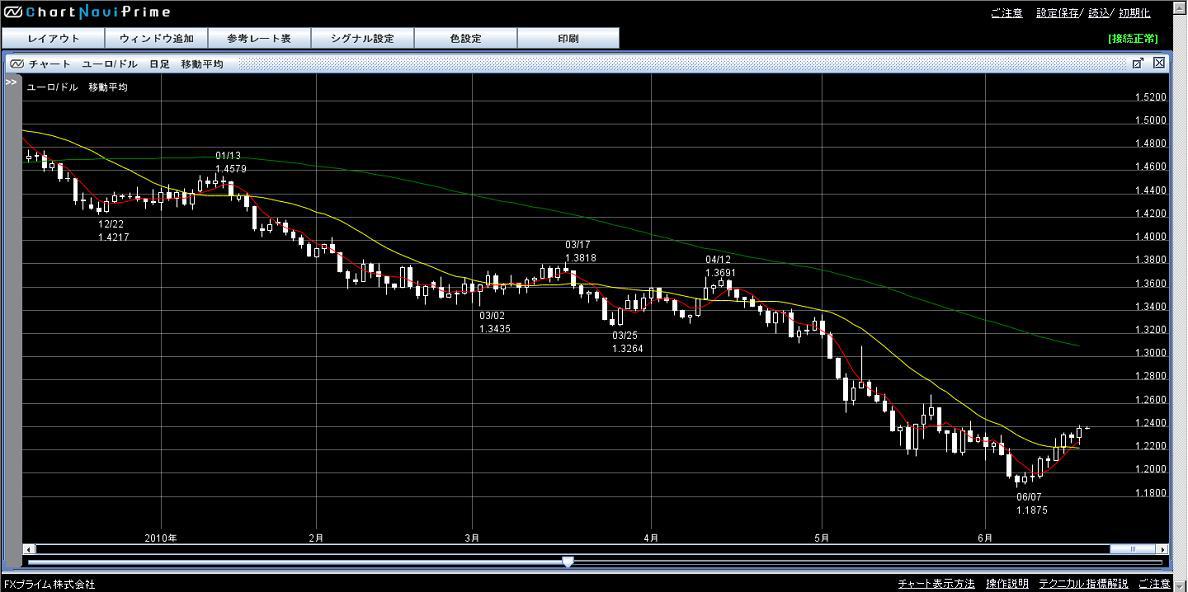 日足チャートを見たら 「おっ!移動平均の5日線と20日線がゴールデン・クロスしているではないかぁぁぁぁ!」と嬉しいものを発見しました。しかし、よーく見てみたら今年に入ってから4回目のゴールデン・クロス・・・ しかもクロスした後にその前の安値を下回る下落に見舞われている・・・ 分が悪いような気がしてきた。どーしよー。半分利食っておくべきか?1.2450にストップがあると書いてあったけど、そこまで行く?上値目途は一体どこ?どなたか教えて下さい。