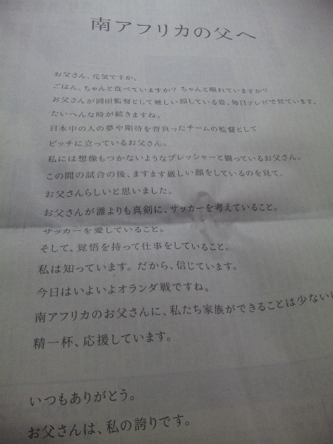 私もこの文章を読んで、岡田監督のお嬢さんの聡明さが伝わりました。