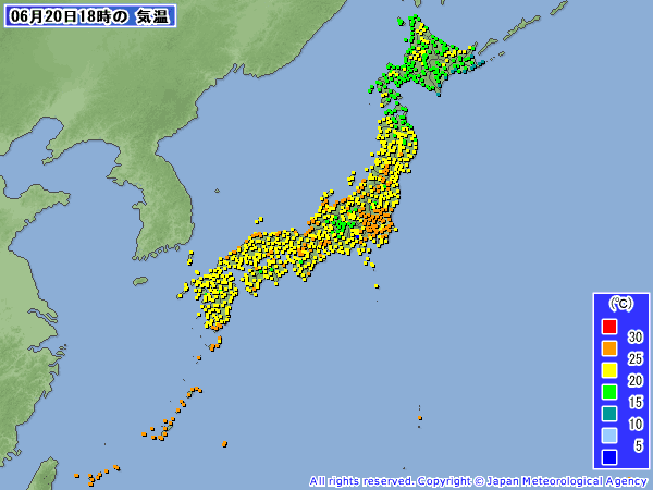 気象庁から18時のアメダスの気温の状況です(* ̄  ̄)♂【 】