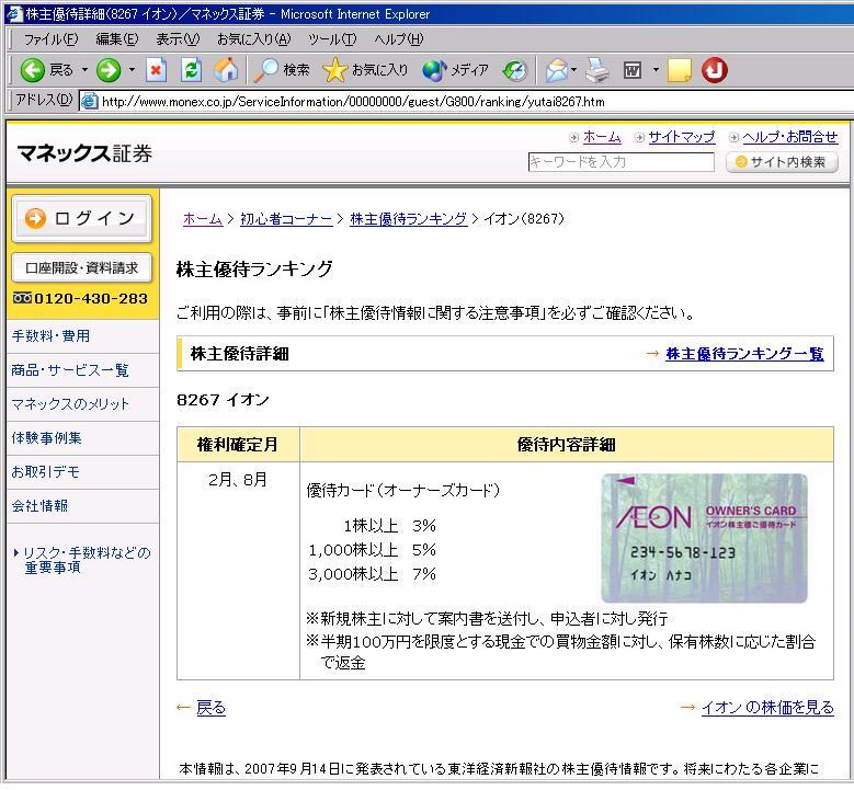 はい♪標記の件でつが、なんかマネックスのHP見てて、人気の優待なんて欄があったので、ドレドレって見ていると♪