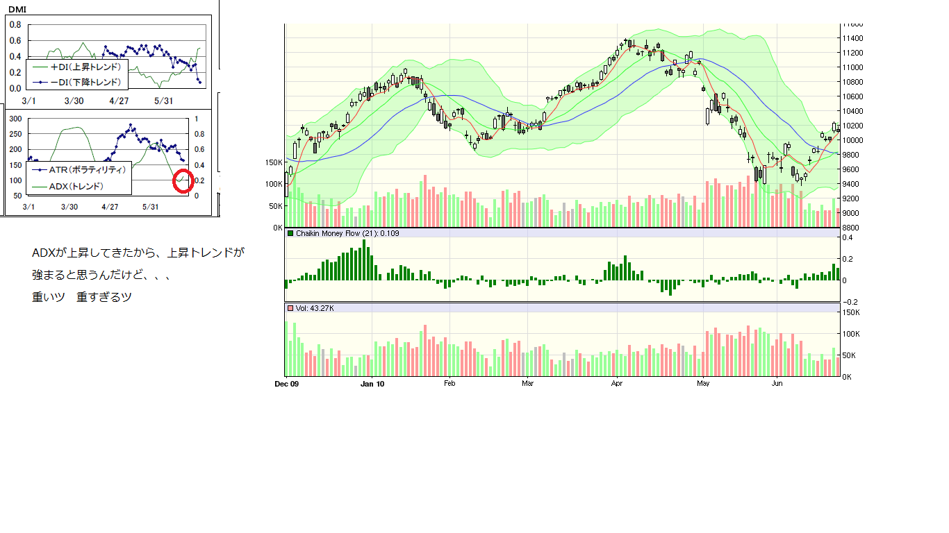 DMIみると、上昇トレンドが強まりそうな感じなんですけどね~