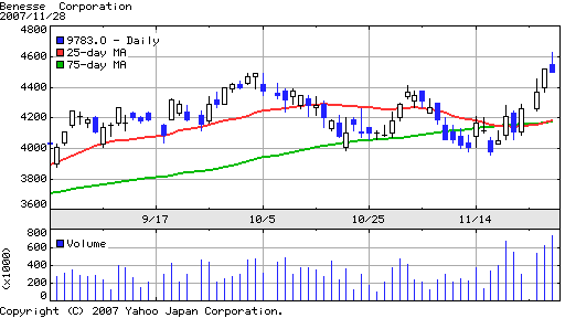 図2:ベネッセのチャート(日足)※Yahoo!ファイナンスより