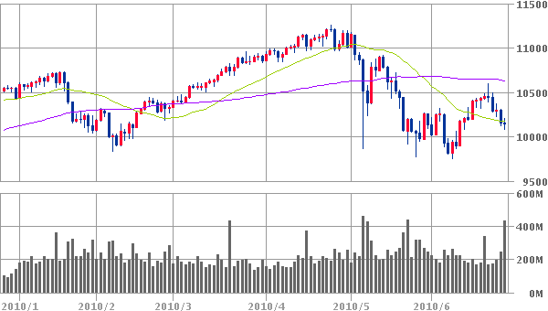 ここ昨今の弱々相場を眺めていると、どうも日経¥10,500あたりがせいぜい上限のようで、ここを越えられぬとやはり長期デッドクロスは避けられぬかと存じまする。拙者は売りに関しては、つなぎ売りのみとしてるので、あまり出番がなさそうでござる。戻り高値でETFの空売りをするかもしれませぬが…(^^;