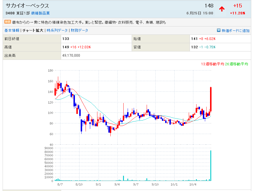 3408:サカイオーベックスが急騰ですがどこまで上げるのでしょうか