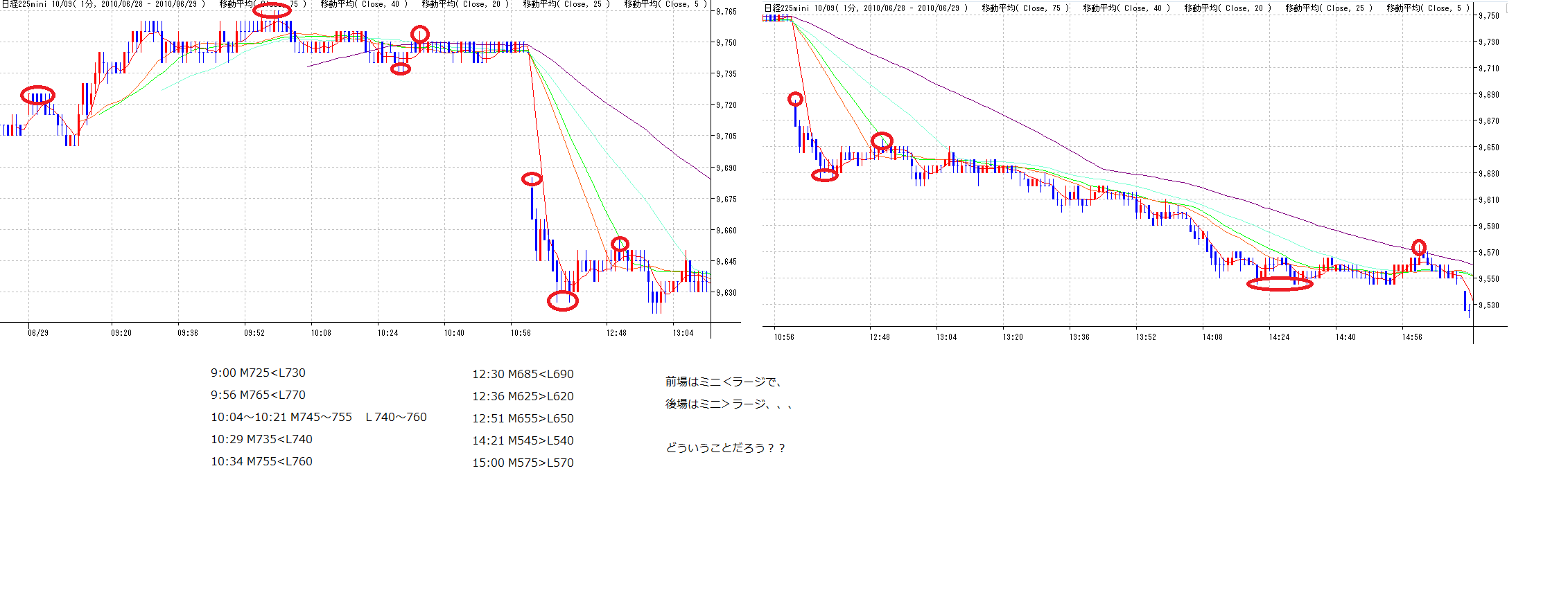 前場ミニ<ラージで、後場ミニ>ラージ、、、