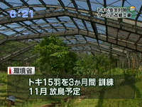 その後、今年放鳥する予定のトキを15羽ケージに移し、 3か月間訓練したあと11月に自然に放す予定です。