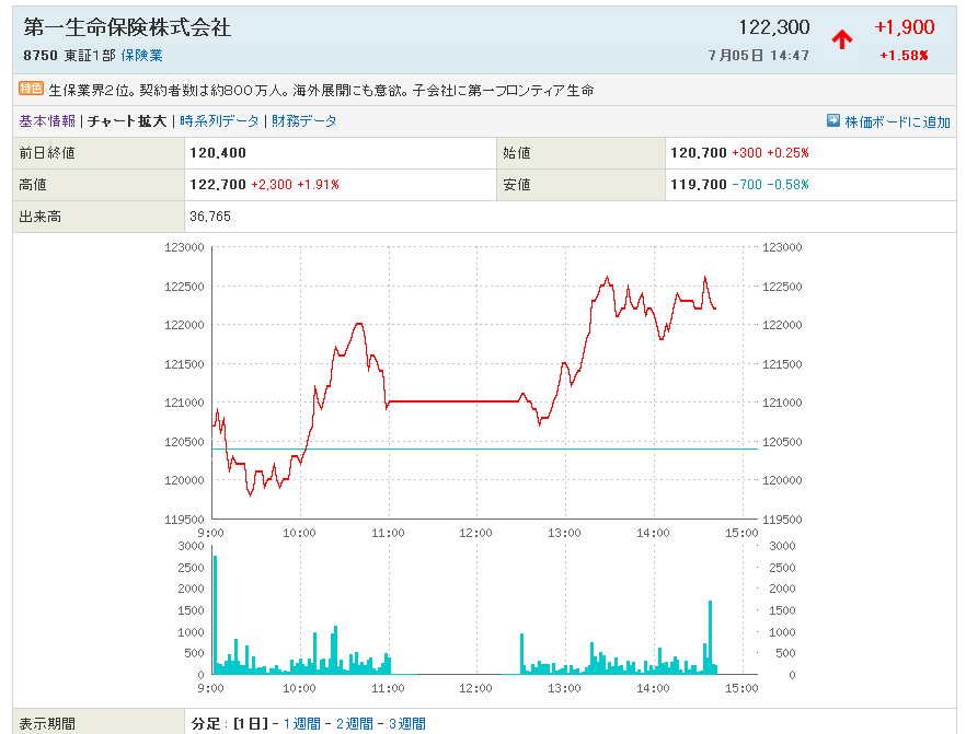 8750:第一生命の火曜日はどうなるでしょうか???