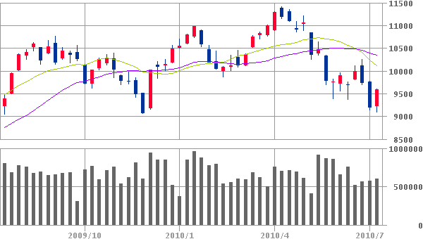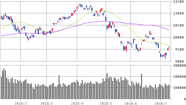 ちょっと相場的には動きづらく、夏休みというのも良きお考えかと存じまする。今の状態では、26週線を越え¥10,500を抜けていくとは考えにくく、長期デッドクロスは避けられぬ展開かと…( ̄へ ̄;