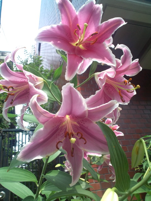 東京の住まいの前にある花壇で、ピンクの大きなユリが咲いていました。