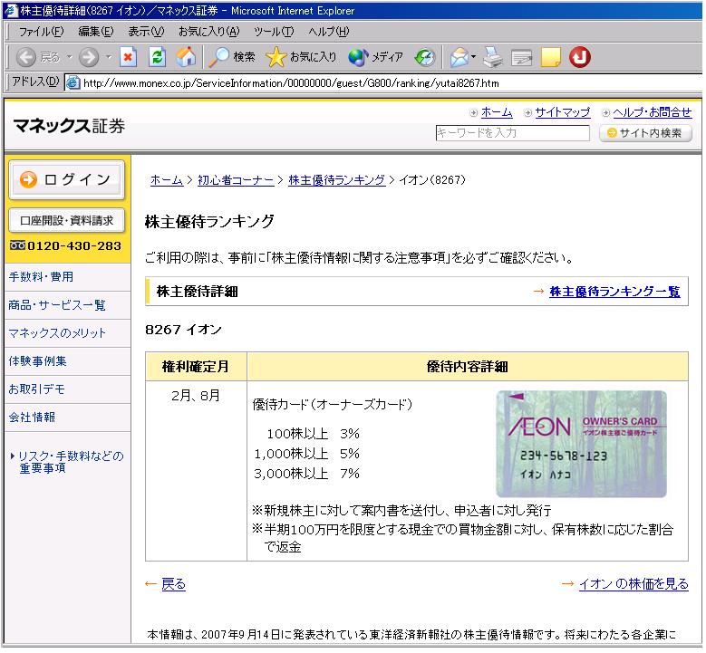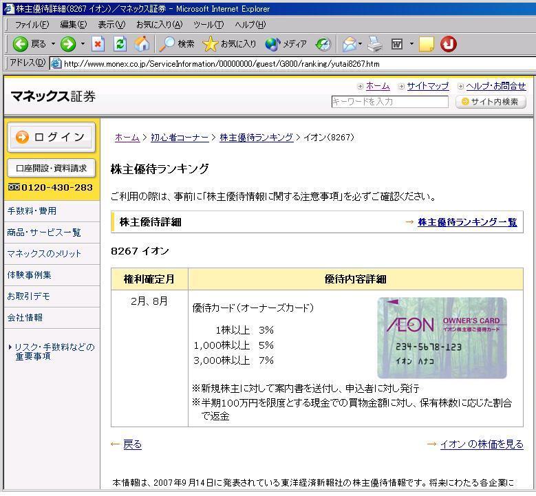 「イオンの優待情報の確認」(2007-11-29 17:34:13)