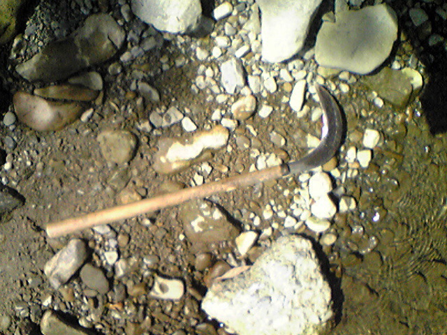雑草を薙ぎ払い笹を切り倒しながら進みました。川の両岸は家の土地なので特に問題ないですが、よその土地でこれをやると裁判沙汰でしょうか?毎年このシーズンまったく知らない他人が家の土地で花や虫を捕まえていき、バーベキューをやるのですがそれって窃盗罪や放火に問われないものかと思っておりますが・・