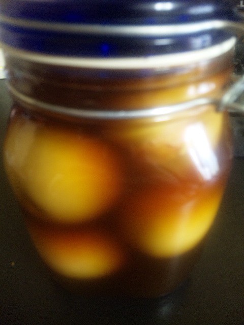 >帰りに買ってきた「プラム」を酒に「にんにく」をしょうゆ漬けに!