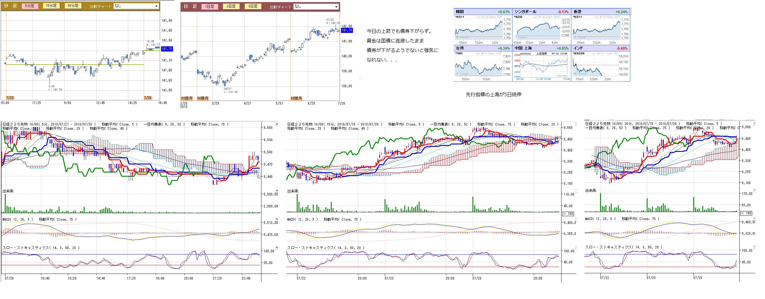 1、分足と債券の記録(夕場終了後にチャートアップします)