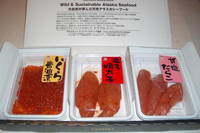 アラスカ産 魚卵三点セット(いくら、明太、たらこ)各120g です。