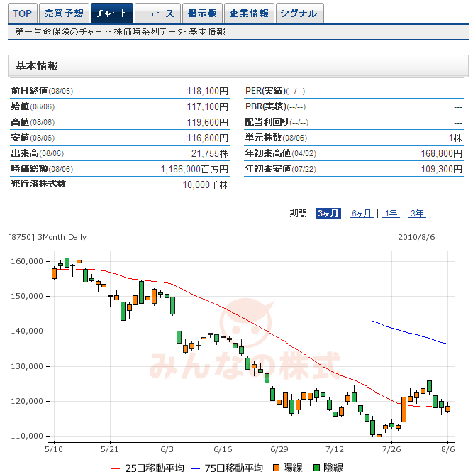 8750:第一生命の月曜日はどうなるでしょうか???