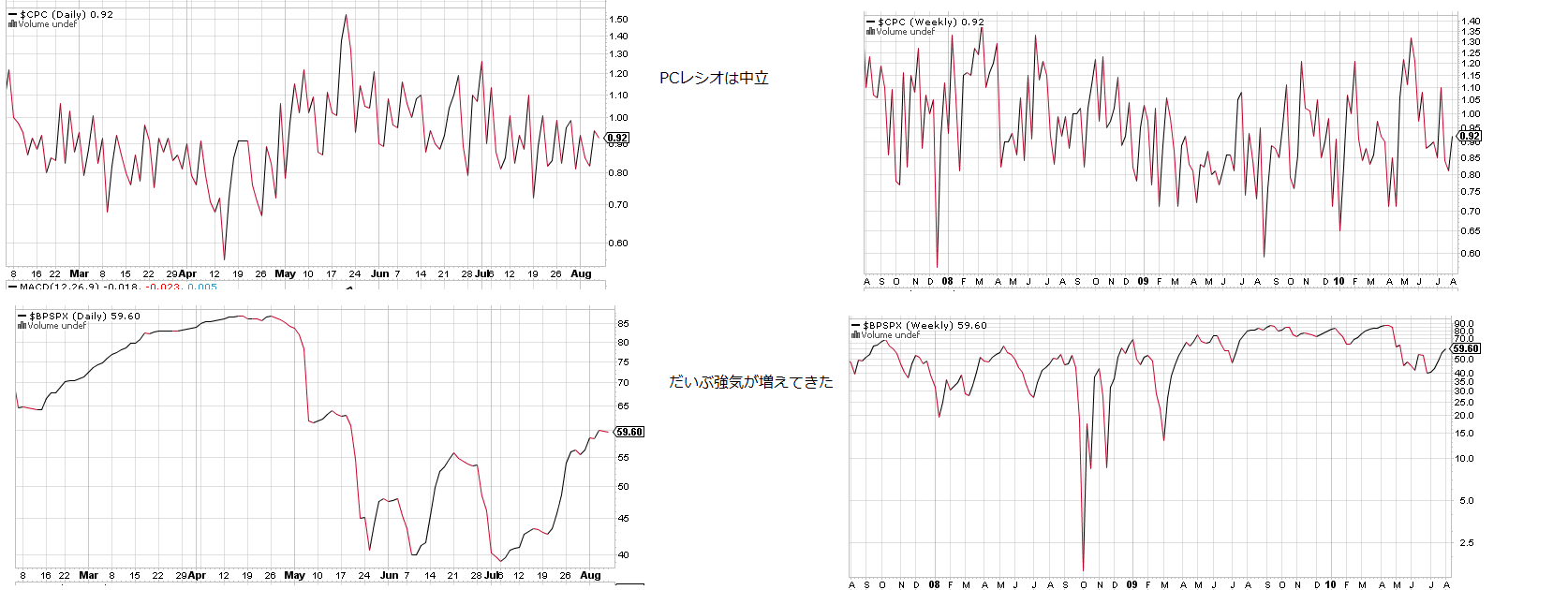 3.上 プットコールレシオ 下 ブリッシュパーセント指数