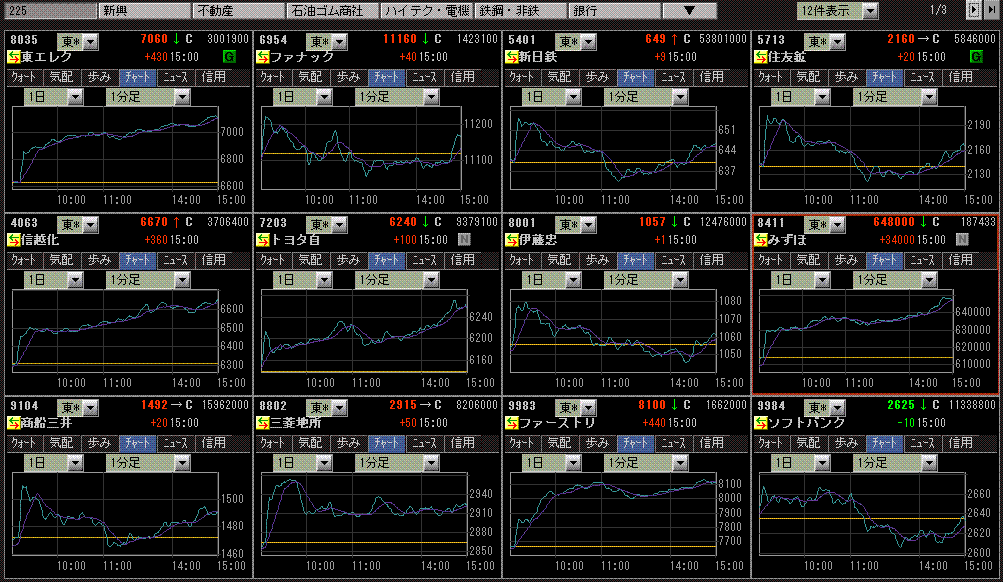 値がさ株の上げ方はちょっと??でしたね(ファーストリテも高かったですし)ちょっとSQに向けて気を引き締めなければ!と思った一日でした。